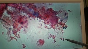 Chronic ongoing ear infections, infections of several weeks or longer, require more aggressive testing and treatment. In some cases, these may have been painful and swollen for some time without being obvious. Or these may be ear infections that come back on a regular basis. These cases require a microscopic exam, and ear culture to determine the correct antibiotic. Ongoing ear infections often have resistant bacteria as the cause, so it is essential that they are recultured to make sure the infection is gone. Many of these cases also have Otitis Media, a Middle Ear Infection. Middle ear infections require oral medication in order to penetrate the deeper tissues of the middle ear. It is important to schedule an ear flush procedure as part of the treatment to remove infectious material and allow ear drops to be more effective.